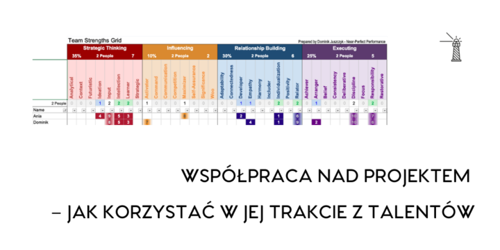 Dodam, że było to możliwe dlatego, że oboje świadomie pracujemy nad naszymi talentami, inwestujemy w ich rozwój, dzięki czemu mogliśmy opowiedzieć sobie nawzajem, jak dane talenty są widoczne w naszym działaniu, czego się po nich (a więc po sobie) możemy spodziewać. Mieliśmy gotowe „Instrukcje obsługi siebie”, które mogliśmy przekazać drugiej osobie na początku współpracy. Umiejętność wniesienia tej wiedzy była bardzo cenna, więc zdecydowanie warto pracować z talentami w praktyce, aby lepiej działać nie tylko w ramach własnych zadań, ale też w projektach z innymi.